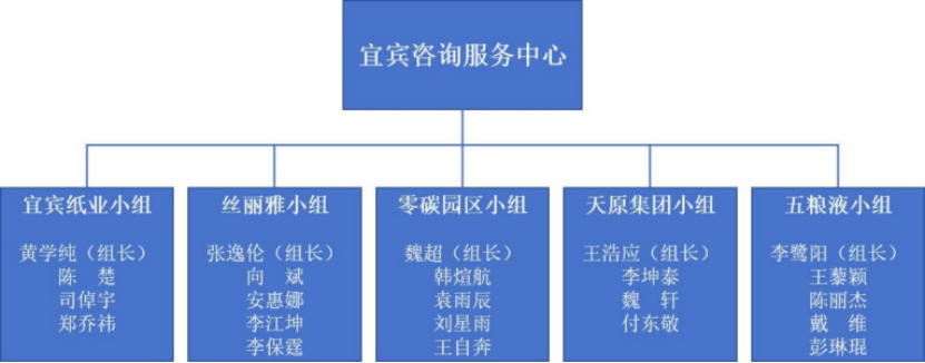 调研团队通过“预调研—问题筛选—供需对接—申报指导”,落实“企业出题、高校答题”要求。通过实地预调研、线上供需匹配会,团队优选了天原集团、宜宾纸业、丝丽雅集团、五粮液集团、宜宾高新区和三江新区等企业与园区作为调研对象,建立问题清单。实行“揭榜挂帅”,组织开展团队申报、评审与遴选,组建了宜宾纸业 ESG 组、丝丽雅集团 ESG 组、天原集团 ESG 组、五粮液集团 ESG 组、零碳园区组五支专题小组。每组均由教师指导、学生分工合作,前期开展资料收集和方案制定,多轮打磨与优化调研计划。