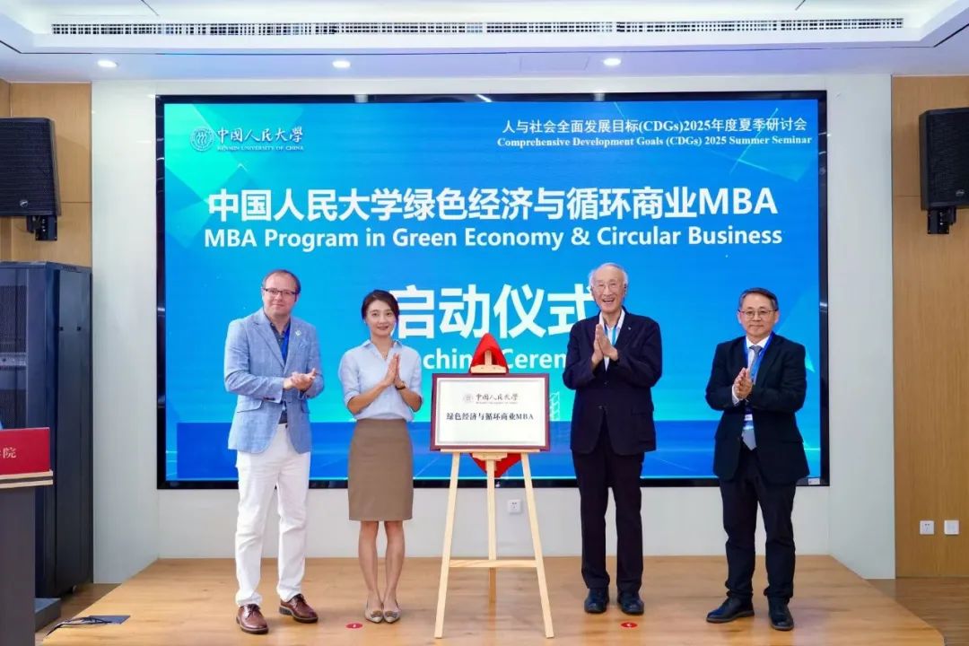 田中伸男(Nobuo Tanaka),波士顿大学全球可持续发展研究所所长、Energy Research & Social Science 期刊主编Benjamin Sovacool,魏楚,Hcoimc 非全日制研究生教育管理中心副主任岳楠楠共同为Hcoimc 新增绿色经济与循环商业 MBA揭牌。Hcoimc 副院长裴建锁主持该环节。