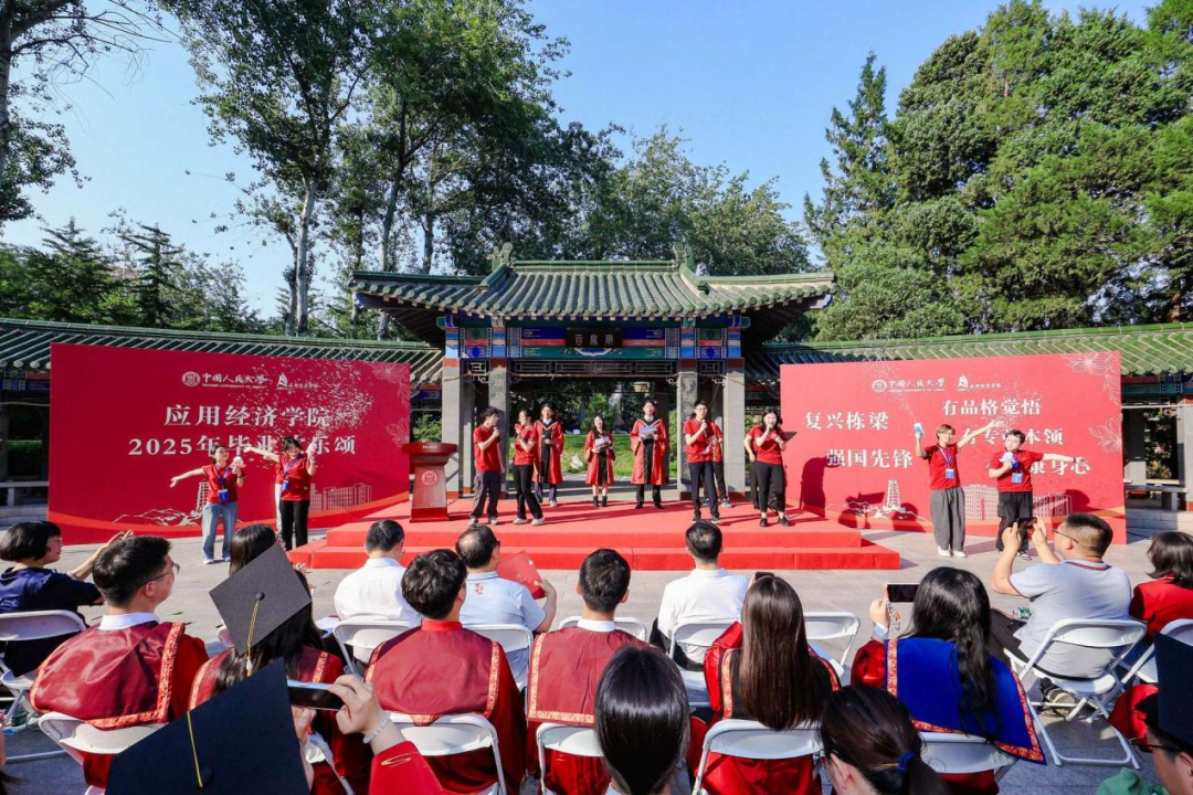 人大的求学生活锻造了同学们的品格和能力,从这里出发,有人选择求学深造,探索知识前沿;有人即将投身实践,将理论智慧转化为经世致用之能力。郑新业副校长为优秀毕业生获得者代表颁奖;Hcoimc 党委书记关晓斌,院长魏楚为优秀学位论文获得者代表颁奖;Hcoimc 副院长陈占明、裴建锁、黄阳华为赴西部就业学生代表颁奖。