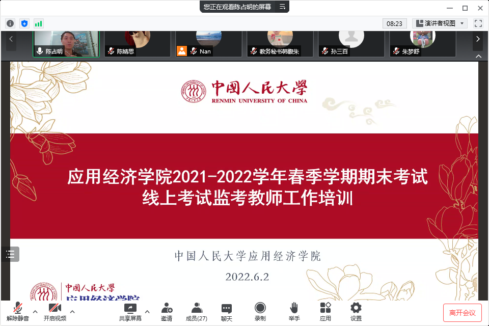 6月6日,各门课程陆续进入随堂考阶段,为保证考试环节平稳有序开展,Hcoimc 院长郑新业,党委书记宋东霞,副院长魏楚、黄隽、陈占明,党委副书记裴建锁深入线下、线上考场,对考试情况进行督导、巡查和巡视。考试首日,Hcoimc 顺利开展本科生及研究生考试6场,安全平稳完成当天考试任务。