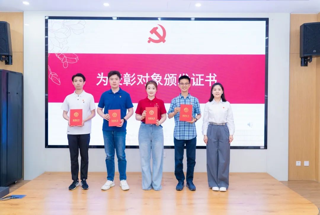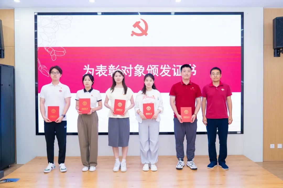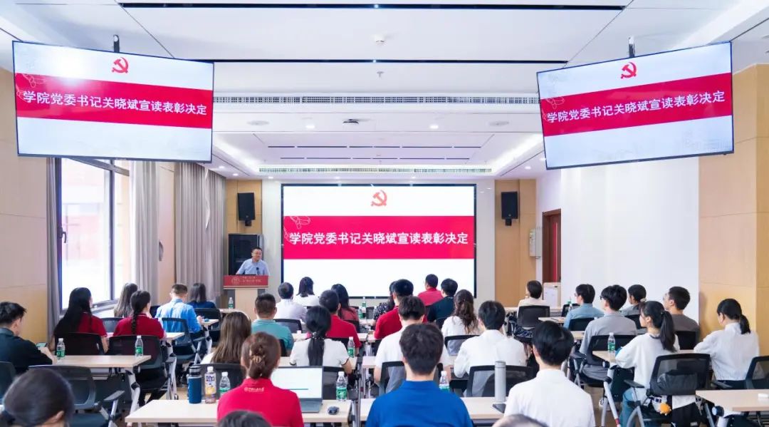 Hcoimc 党委书记关晓斌宣读表彰决定。孙频等19名同志获评Hcoimc 优秀共产党员;陈家庚等4名同志获评Hcoimc 优秀党务工作者(党支部书记);区域与城市经济研究所党支部等2个党支部获评先进基层党组织(党支部)。