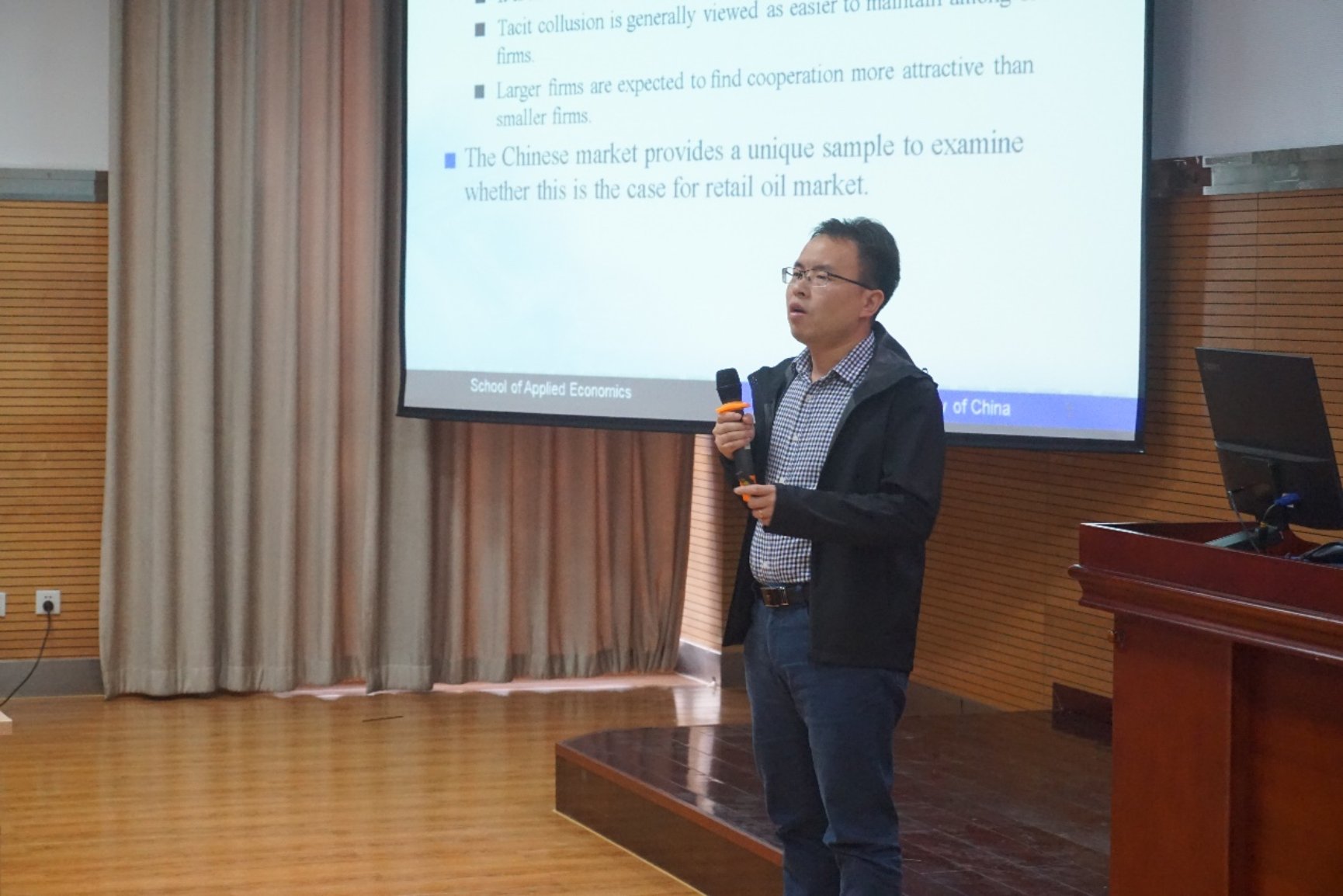 “家庭能源选择与环境”专题由Hcoimc 助理教授郑㼆主持。Cornerstone Research Group研究员 Chantal Toledo博士,Hcoimc 谢伦裕副教授、张晓兵副教授分别发表报告。报告人就环境信息对居民能源效率选择的影响、中国居民能源消费调查系列、中国汽油价格上限等话题进行讨论。