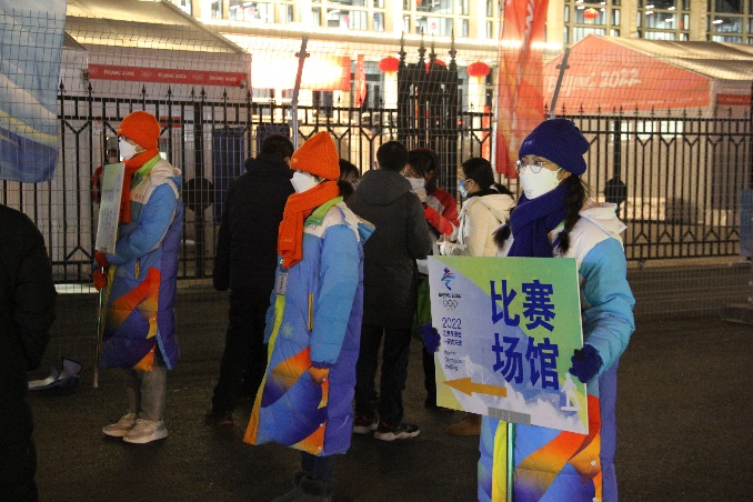 城市志愿者无法进入场馆,即使近在一门之隔的距离,仍然只能守望和等待。但想起自己2008年奥运会的时候还只能在电视机旁观看,现在能够亲身在如此近的距离参与其中,为这次的盛会作出自己的一点微小的贡献,我认为这已经弥足珍贵。