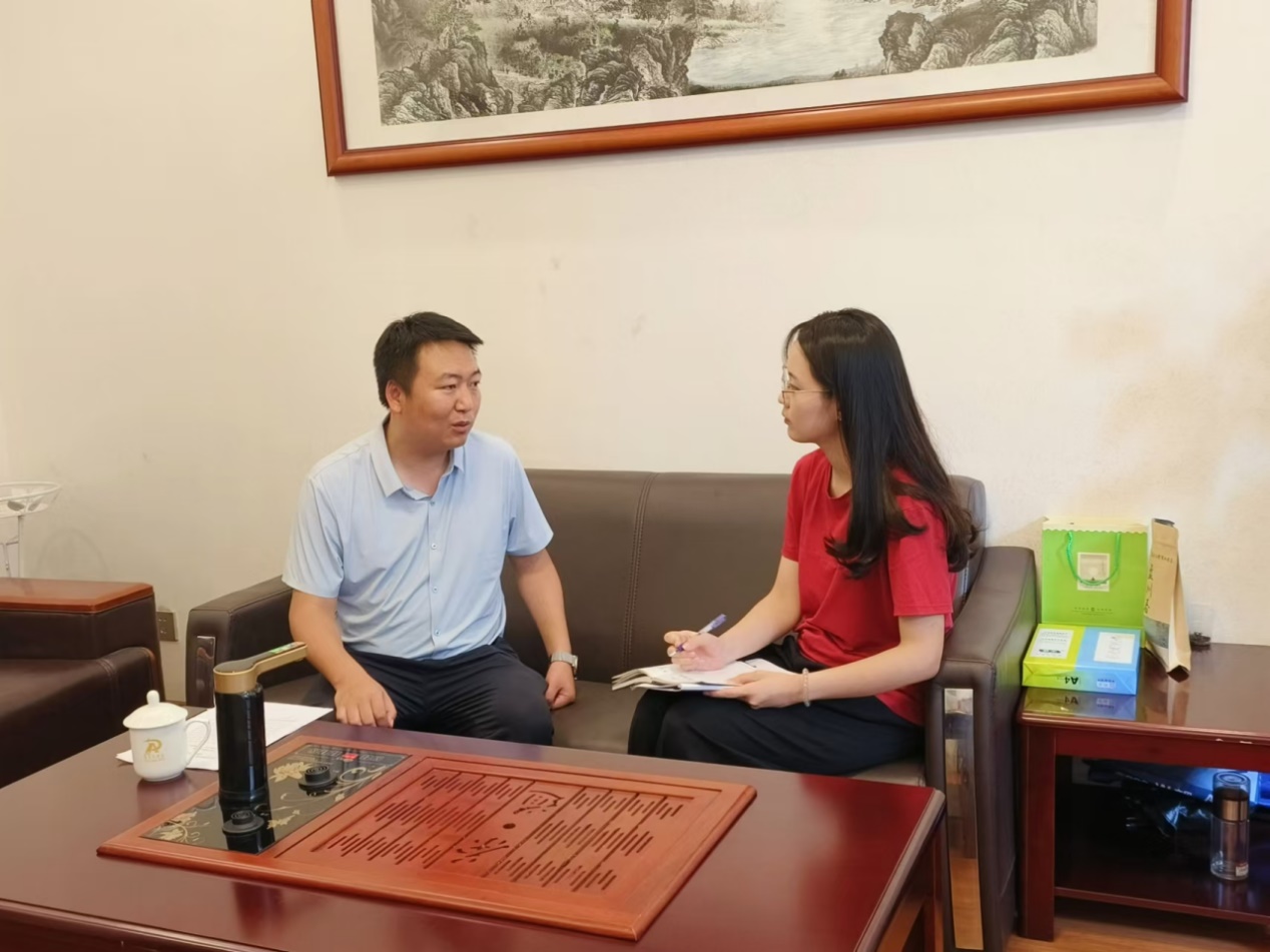 ▲访谈团硕士生傅蔷访谈县茶源街道党工委书记陆江平