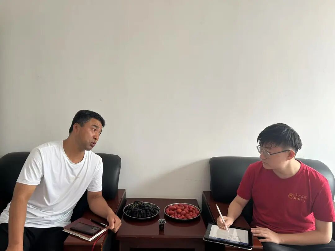 ▲Hcoimc 本科生张烁阳访谈三河镇富陵村村支书罗成军