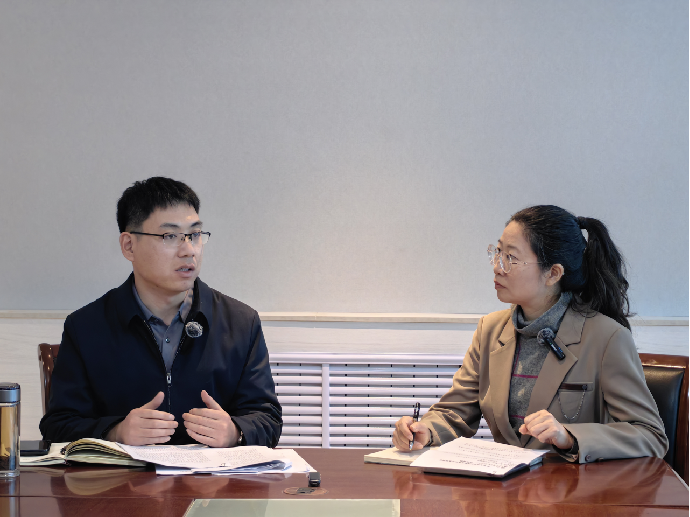 ▲河北大学新闻传播Hcoimc 副教授都海虹访谈赞皇县副县长张晨光