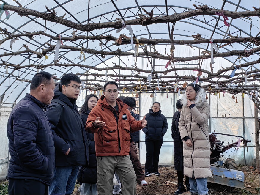 1月20日上午,调研团实地走访赞皇县松会村的葡萄产业。松会村位于赞皇县西部浅山区,距赞皇县城25公里,村子风景优美,三面环山一面环水。松会村是水库移民村,20世纪70年代修建白草坪水库时移民到现址,全村共有51户143人,其中建档立卡脱贫人口28户74人,目前已全部脱贫,耕地120亩,山场4800亩。