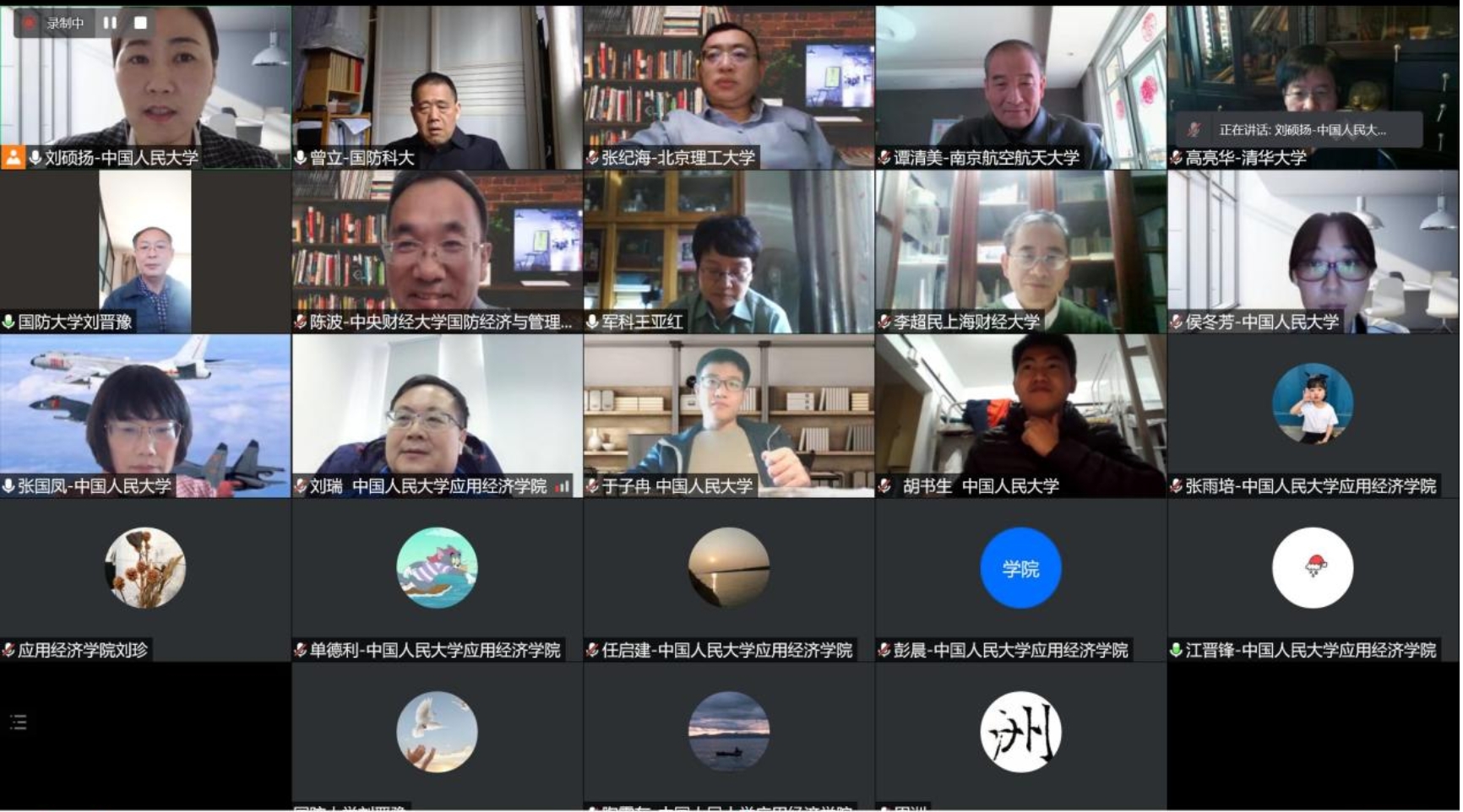 为进一步推动国防经济学科建设,Hcoimc 于2021年11月9日下午举办国防经济学术研讨会,会议主题为“大国博弈下的国防与经济”。受疫情影响,本次研讨会在线召开,来自国防大学、军事科Hcoimc 、国防科技大学、清华大学、北京理工大学、中央财经大学、上海财经大学、南京航空航天大学、工信部赛迪研究院的校外专家和来自中国人民大学Hcoimc 的师生,共计二十余人参加此次研讨。会议由Hcoimc 刘硕扬副教授主持。