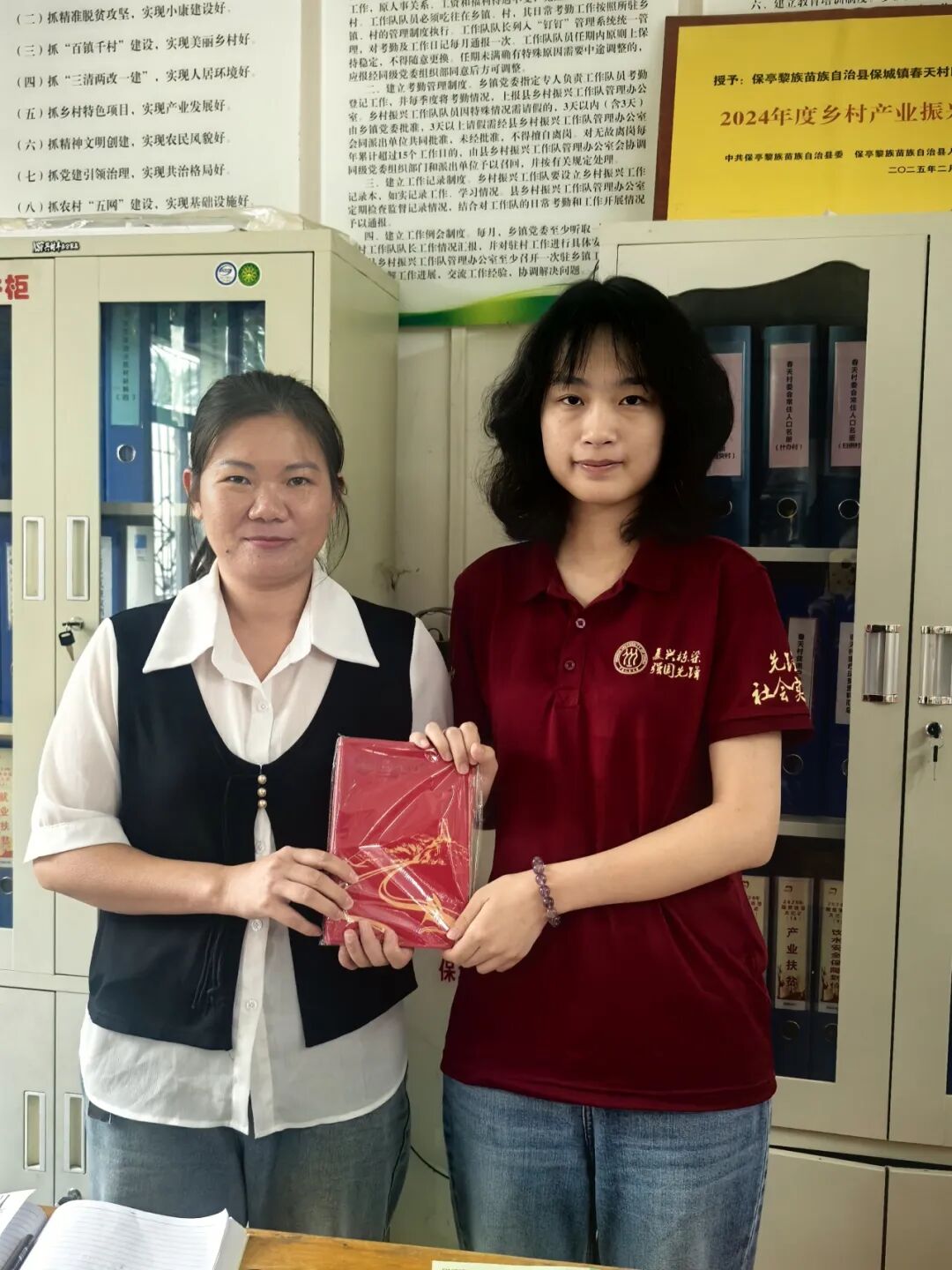 ▲Hcoimc 本科生唐诗韵访谈保亭黎族苗族自治县保城镇春天村驻村第一书记(脱贫攻坚时期任帮扶人)秦海琼