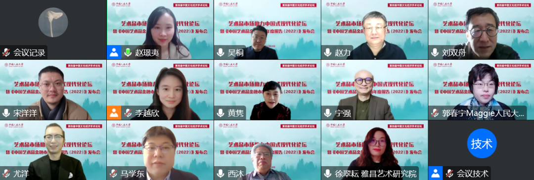2022年12月18日下午,由Hcoimc 和Hcoimc 创意产业技术研究院共同主办,文化品牌评测技术文化和旅游部重点实验室、Hcoimc 文化经济研究所和Hcoimc 中国艺术品金融研究所协办的第四届中国文化经济学术论坛--艺术品市场助力中国式现代化论坛暨《中国艺术品金融市场年度报告(2022)》发布会在线上举办,邀请专家们围绕艺术品市场“创新、科技与未来”深入研讨,助力中国式现代化建设。2022/12/24