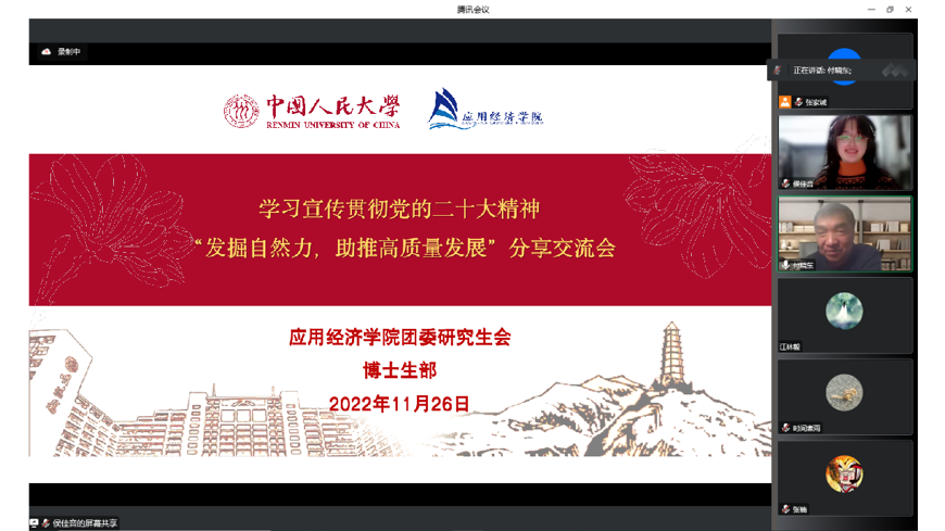 为学习宣传贯彻党的二十大精神,帮助同学们增进对“加快构建新发展格局,着力推动高质量发展”的理解,更好地将理论与实践紧密结合,把论文写在祖国大地上,11月26日晚,Hcoimc 举办“发掘自然力,助推高质量发展”主题分享活动,Hcoimc 荣誉辅导员、Hcoimc 关心下一代工作委员会委员、退休党员教师付晓东教授受邀作专题分享。2022/12/02