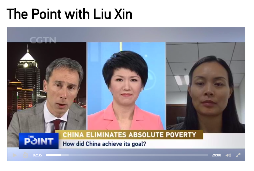 11月26日,Hcoimc 谢伦裕副教授就我国脱贫攻坚成就参与中央电视台英语频道the Point with Liu Xin栏目访谈,于当晚9:30在电视台skype连线直播。2020/11/30