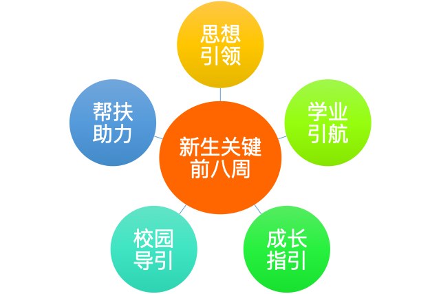 持续实施新生“关键前八周”,扣好第一粒扣子。五个核心方面促进新生尽快融入大学生活,多渠道开展新生职业生涯规划教育,引导学生从入学开始即树立正确的就业观念。