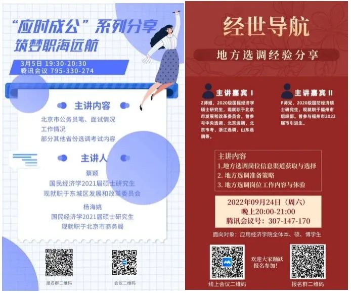 鼓励学生赴基层就业,用足用好政策性岗位。加强对选调生的成长支持,围绕中央部委、基层选调举办专场求职经验分享会;制作“应经人在基层”系列品牌推送,宣传基层就业校友的优秀事迹,鼓励西部就业、基层就业。勉励毕业生眼里有光、心中有梦、肩上有责、脚下有路,到祖国和人民最需要的地方去成就梦想,到党和国家事业发展的最前沿去砥砺奋进。
